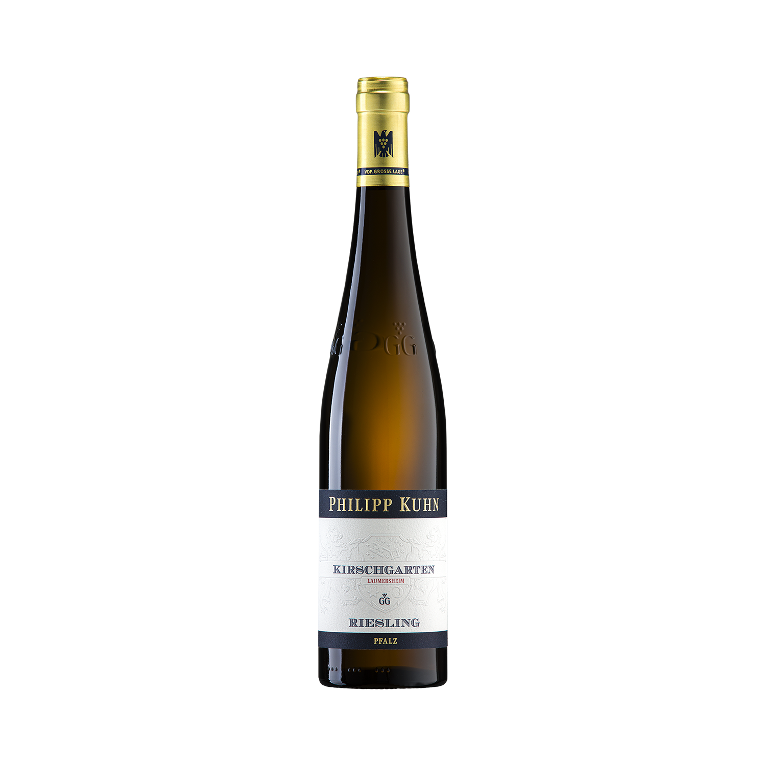 Kirschgarten GG este probabil cel mai bun vin facut de Philipp Kuhn, Grosses Gewachs (GG) insemnand topul calitatii germane, Grand cru-ul de Riesling. Venit de pe o parcela legendara, una dintre cele mai celebre din Palatinat, cu origini datand din 1490, Kirschgarten GG este un vin exemplar. Cu niste caracteristici perfecte care se vor accentua in timp (nasul de petrol), recolta 2023 este considerata una de manual.Strugurii sunt recoltati manual, mustul este lasat pe pielita 12 ore, iar vinul este tinut pe drojdii fine pana aproape de momentul imbutelierii. Un riesling superb cu un nas caracteristic, o salinitate superba si un post gust lung si incantator. Excelent!